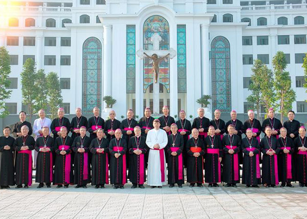 Sau thánh lễ, Đức Tổng-Giám quản và linh mục đoàn Phát Diệm chụp hình lưu niệm với Đức Tổng Giuse và quý cha, quý thầy Đan viện, để lưu lại giây phút quý giá này.